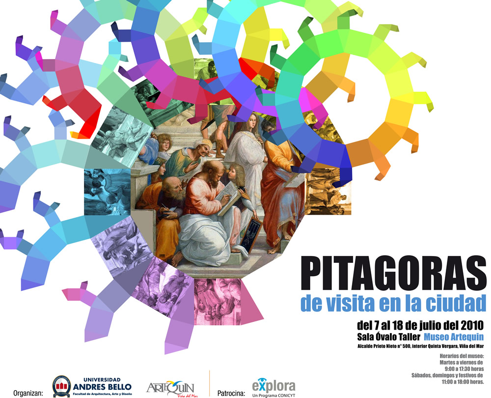 Un grupo de profesores y su taller de alumnos de segundo año de la Escuela de Diseño de la Universidad Andrés Bello, sede Viña del Mar, se ha propuesto mostrar de una nueva y lúdica manera el complejo mundo de las ideas de Pitágoras y su Escuela, donde se amalgaman, a través del diseño, áreas tan diversas como Música, Aritmética, Astronomía, Geometría y Filosofía.