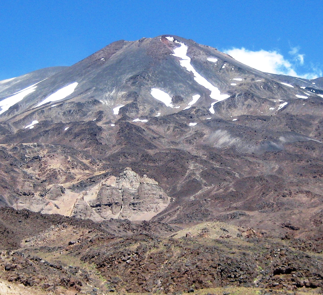 El estudio indica que “el Tupungatito, localizado en las nacientes del río Colorado, afluente del río Maipo, es visible desde su base de acceso occidental (foto de la investigadora). Tiene un grupo de cráteres bien preservados y fumarolas permanentes. La cantidad histórica de erupciones registradas ha sido variable, siendo posible que parte de ellas sean reactivaciones menores o incrementos de las fumarolas.”