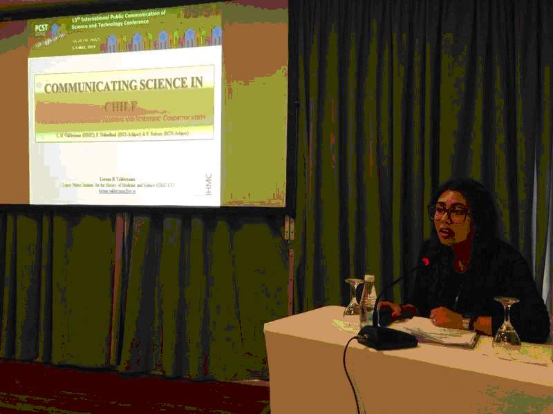 Lorena Valderrama, Magíster en Historia de la Ciencia y Comunicación Científica y Doctoranda en Historia y Comunicación de la Ciencia presentó la ponencia titulada “Communicating Science in Chile: Problems in Journalism training and Scientific Communication” en la mesa moderada por el destacado académico Brian Trench de la School of Communications de UCD. La ponencia dio cuenta de algunos resultados de la de la I Encuesta Nacional de Comunicadores Científicos en Chile realizada en el año 2012, junto a los directivos de Achipec, Evelyn Nahuelhual y Raimundo Roberts.