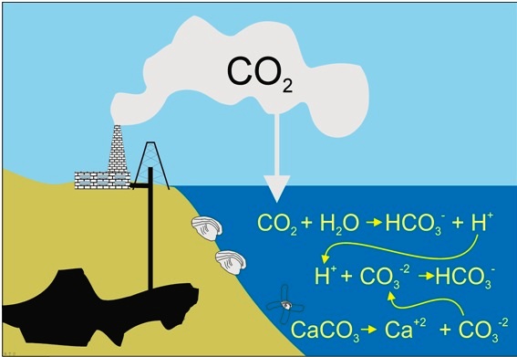 Su origen nace en la combustión de materiales fósiles que liberan cantidades enormes de dióxido de carbono (CO2) a la atmósfera. El aumento de este gas invernadero (CO2), no sólo perturba el clima del planeta, sino que también afecta profundamente la química del mar. Una parte importante de las emisiones de CO2, derivada de la quema de combustibles fósiles, entra al océano a través de la superficie del mar, reaccionando con el agua, formando ácido carbónico y por ende disminuyendo el pH de los océanos (Acidificación del Océano; OA).