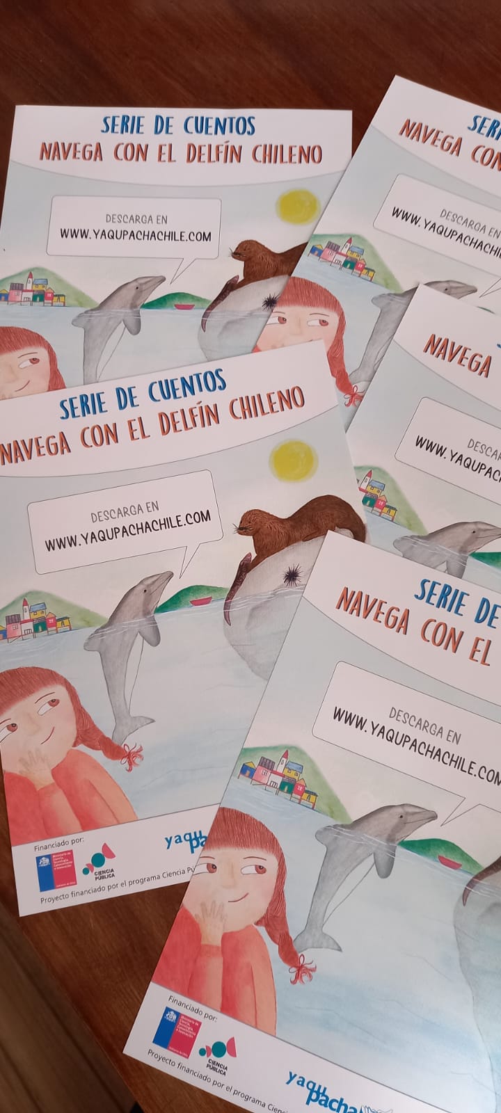 La ONG Yaqu Pacha Chile lleva más de 20 años investigando al delfín chileno y buscando potenciar la educación respecto a este cetáceo. Los cuentos se basan en la información recopilada a lo largo de los años y tienen como protagonistas a estos animales marinos, en paisajes y entornos naturales del sur de Chile, tratando temas de biodiversidad marina, problemas de conservación y sus soluciones.