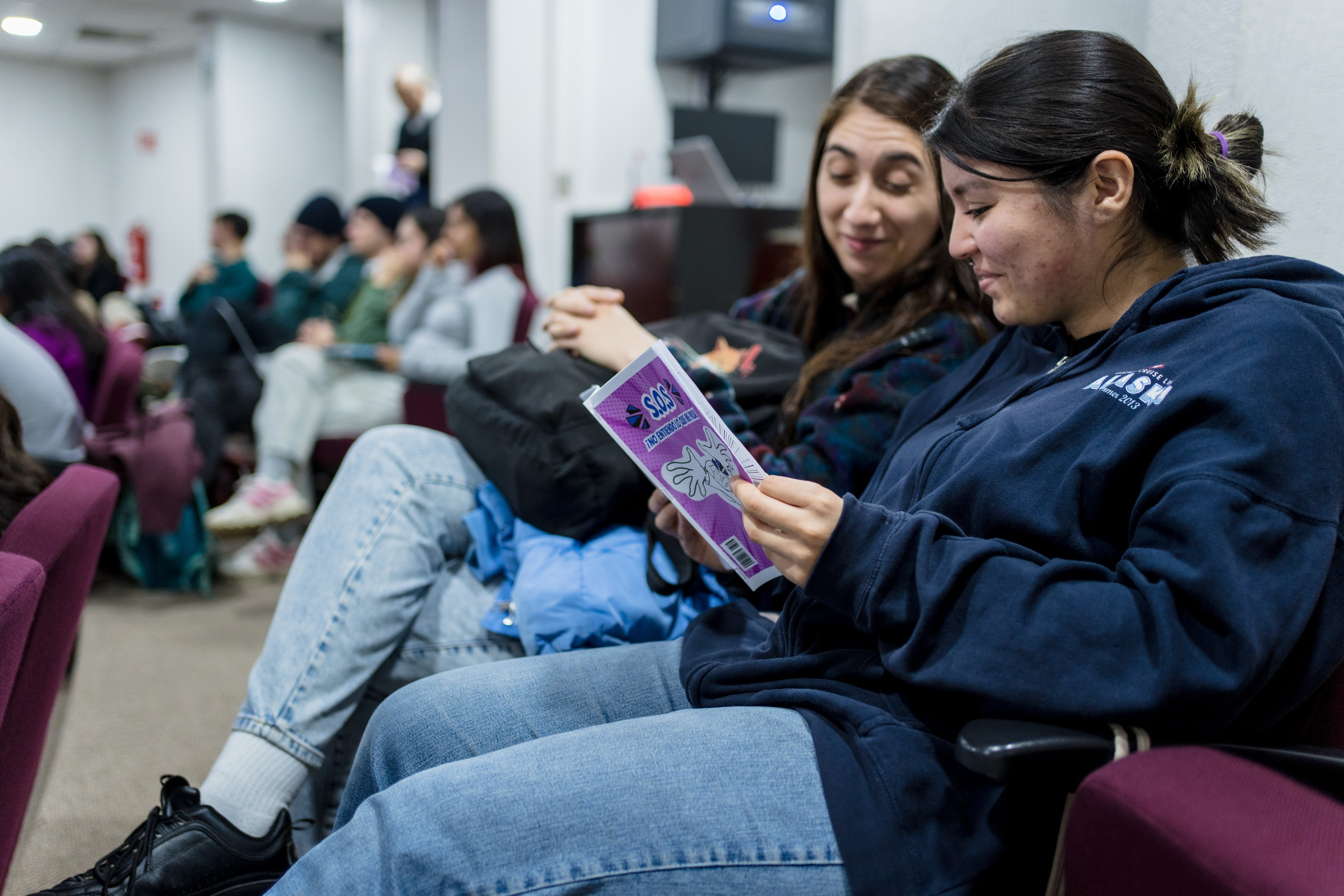 Variadas fueron las temáticas que abordaron los proyectos de comunicación de la ciencia presentados durante la ocasión. Uno de ellos fue el que expusieron las estudiantes de cuarto año de Pedagogía en Química y Biología, María Joaquina Alarcón Espinoza y Camila Luz Retamal Contreras relacionado con la Educación Sexual Integral. Su proyecto fue un comic que titularon “S.O.S. no entiendo lo que me pasa”.