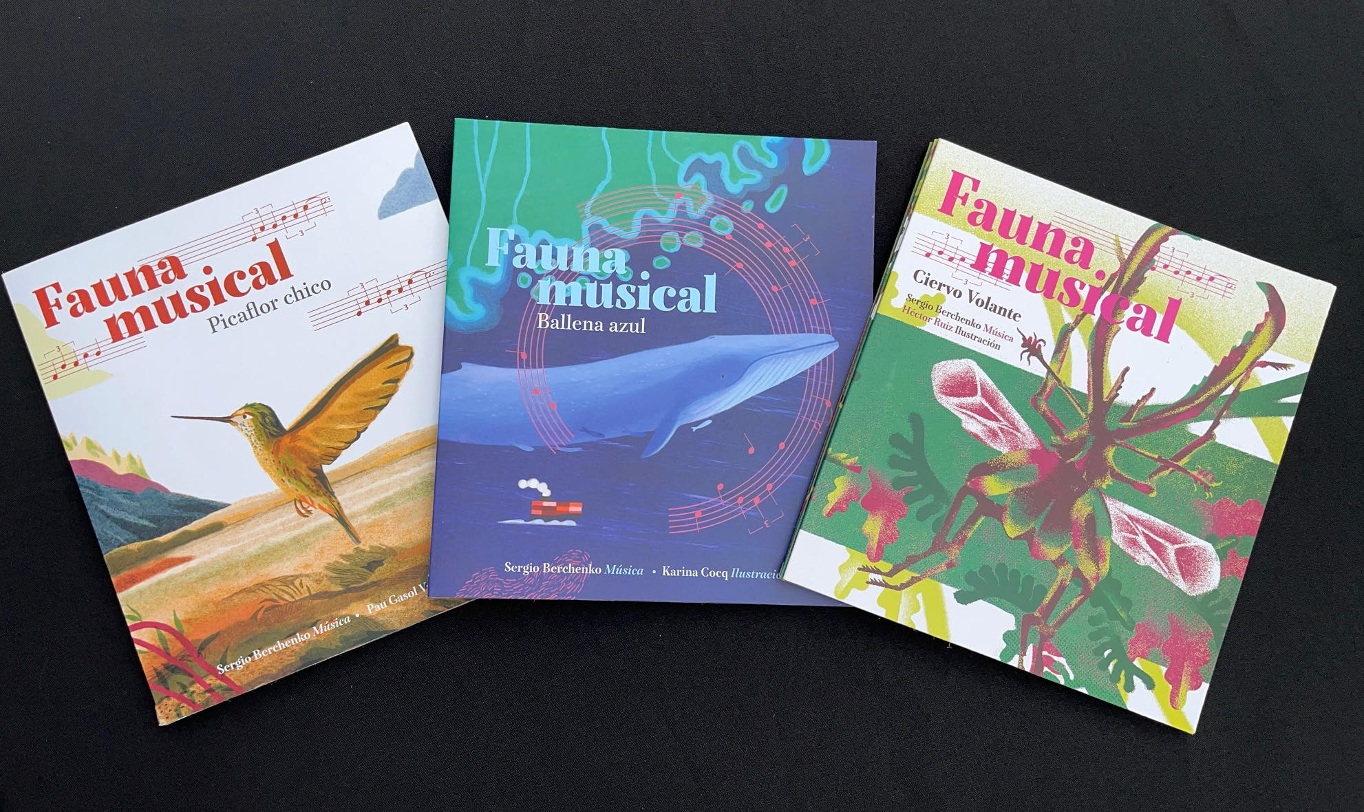 La música, la ilustración y la ciencia se integran para dar vida a la colección de libros informativos “Fauna Musical”. Este proyecto nació desde la inquietud del compositor Sergio Berchenko de acercar la belleza y el amor por la naturaleza a niños y niñas a través de la música. Para esto, el músico, junto a la editorial Cocorococq y nuestra socia Rocío Jaña como asesora científica y parte del equipo creativo, trabajaron durante tres años en la serie de libros Fauna Musical, resultando en tres libros de formato único, ilustrados, de formato leporello o acordeón, cada uno de ellos inspirado en un animal diferente presente en Chile.