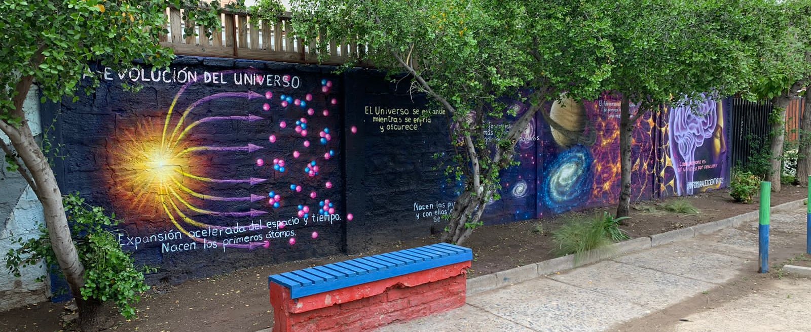Santiago, 29 de nociembre.- Makarena Estrella, socia ACHIPEC y periodista científica inauguró junto al Instituto Milenio de Astrofísica (MAS), lugar donde se desempeña como encargada de divulgación y comunicaciones, cuatro murales astronómicos que conectan la ciencia con la comunidad. “El ciclo de las estrellas”, “La luz del sol”, “Evolución del Universo” y “Exploración espacial” son las obras que podremos encontrar en diferentes comunas de la Región Metropolitana.